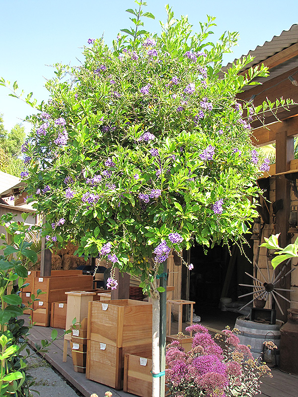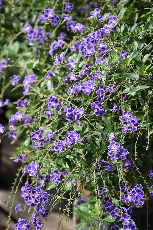 Sapphire Showers Duranta makes a fine choice for the outdoor landscape, but it is also well-suited for use in outdoor pots and containers. Its large size and upright habit of growth lend it for use as a solitary accent, or in a composition surrounded by smaller plants around the base and those that spill over the edges. It is even sizeable enough that it can be grown alone in a suitable container. Note that when grown in a container, it may not perform exactly as indicated on the tag - this is to be expected. Also note that when growing plants in outdoor containers and baskets, they may require more frequent waterings than they would in the yard or garden. Be aware that in our climate, most plants cannot be expected to survive the winter if left in containers outdoors, and this plant is no exception. Contact our experts for more information on how to protect it over the winter months.