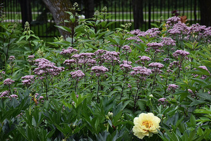 Joe Pye Weed is an herbaceous perennial with an upright spreading habit of growth. Its wonderfully bold, coarse texture can be very effective in a balanced garden composition.