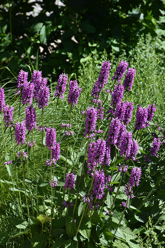 Hummelo Betony has masses of beautiful spikes of rose flowers with lavender overtones rising above the foliage from early to mid summer, which emerge from distinctive purple flower buds, and which are most effective when planted in groupings. Its glossy oval leaves remain emerald green in color throughout the year.