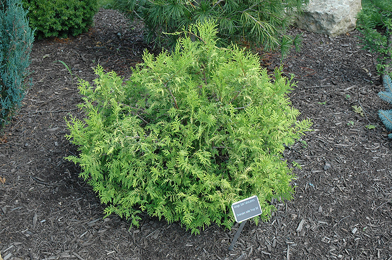 A mounded, dwarf evergreen with soft and mossy gold foliage which turns bronze in fall, a great choice for adding texture to a garden, also used for bonsai; prefers humid environments